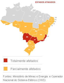 De acordo com o ministro de Minas e Energia, Edison Lobão, um fenômeno atmosférico causado por um temporal na Usina Hidrelétrica de Itaipu foi a causa mais provável do apagão. O fenômeno teria provocado o desligamento de uma linha de transmissão da usina, provocando efeito cascata em outras linhas do Sistema Integrado Nacional. O estado do Rio de Janeiro foi o mais prejudicado com a falta de energia elétrica. O apagão também atingiu na totalidade os estados de São Paulo, Mato Grosso do Sul e Espírito Santo. Parcialmente, foram atingidos os estados de Minas Gerais, Alagoas, Bahia, Rio Grande do Norte, Sergipe, Paraíba, Pernambuco, Acre, Rondônia, Mato Grosso, Goiás, Paraná, Santa Catarina e Rio Grande do Sul. O Paraguai também foi atingido. A Usina Hidrelétrica Itaipu Binacional informou na manhã de hoje que voltou a operar em "condições de normalidade" a partir das 6h (horário de Brasília). Normalizado o fornecimento de energia, resta a quem trabalhava em um computador sem no-break contabilizar as perdas... Entre as pessoas que estavam trabalhando no computador às 22h15min de terça-feira, dia 10, em um dos 18 estados brasileiros acometidos pelo apagão, ou no Paraguai, só estão tranquilos mesmo aqueles que contam com um no-break, que é a melhor proteção, a mais completa, e custa pouco!Saiba tudo sobre no-breaks no portal www.nobreak.com.br. Compartilhe o Boletim No-break com seus colegas e não deixe de nos enviar suas críticas e sugestões. O Boletim No-break é feito para você! |